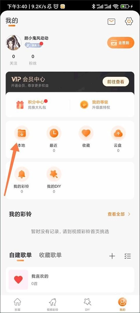 选择“本地”选项进入本地音乐管理界面,首次进入该页面时,可能不会显示本地音频内容。