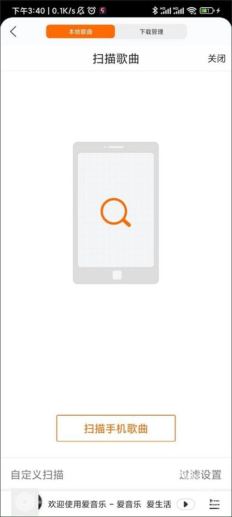 点击“扫描”按钮后,应用程序将自动查找并导入手机中的音频文件。