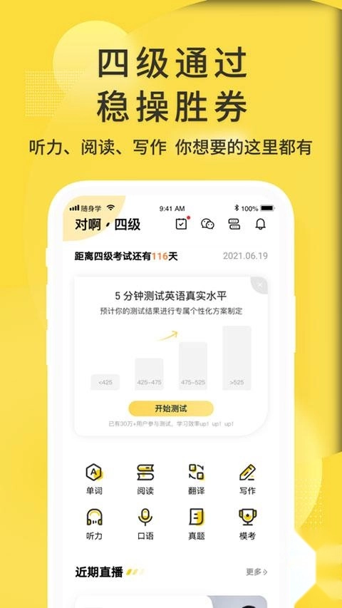 这次上线了免费集训四级视频,免费直播公开课的功能