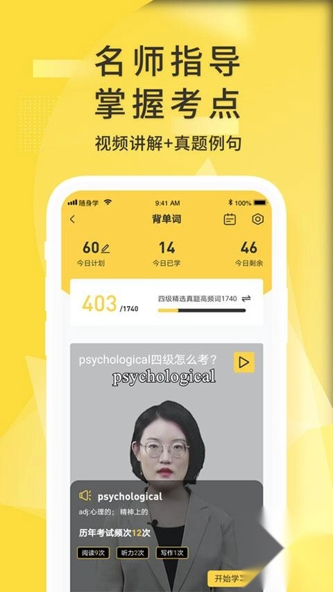 它涵盖了词汇和语法的基本巩固,包括听力、阅读、写作、翻译和测试冲刺的强化提高。你可以在线观看,也可以离线学习。300节课,带你一步步提高英语水平,轻松通过四级考试!