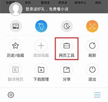 步骤二:在弹出的【网页工具】选项栏里,就能使用已有的插件了。