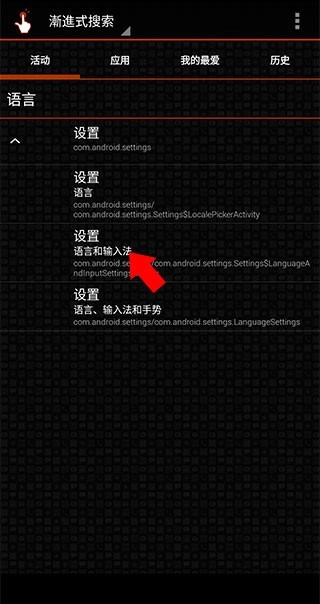 2、在输入输入法后,能看到系统设置选项返回,点击该选项后,即可找到语言和输入法相关设置。
