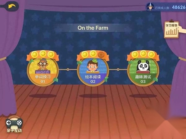 其中绘本阅读这个环节里,有两个部分,分别是:阅读绘本和跟读挑战,可以先跟孩子听一下阅读绘本这个环节,然后再进入跟读挑战。