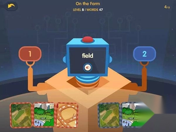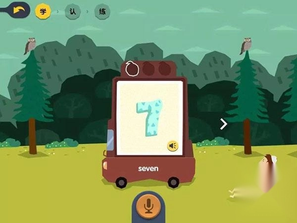3、玩游戏中涉及的单词发音,听标准配音,跟着学单词发音。