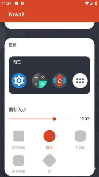 2、继续向下滑动进入下一项设置——应用图标设置,在这里既可以调整图标的形状,也能够更换具体应用的图标。
