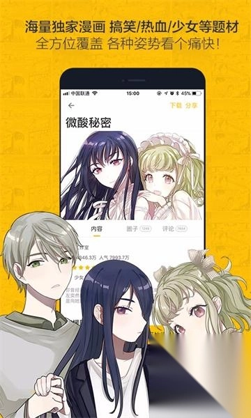 2、漫画分类齐全,无论国家漫画、日本漫画、美国漫画、小说改编的漫画都有,让你看的耳目一新,还可以让你。