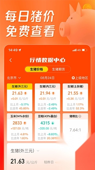 4、生猪市场:免费提供全国各地生猪价格,让您实时掌握市场波动,不再怕卖低价。