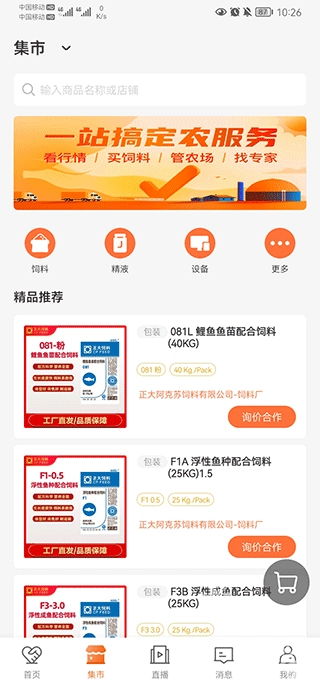2、在集市中,用户可以购买饲料、设备、等物品,但是用户需要先与厂商电话咨询并待厂商为您开户后,才可以进行购买