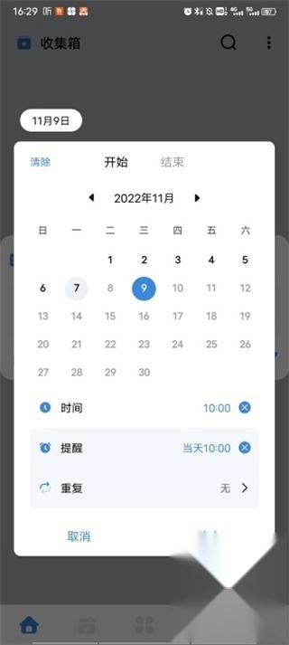 3、详细内容区域内的小图标依次对应时间、标签、子任务和优先级功能。点击日历样式的图标后,可选择任务的具体时间并设置提醒,最后点击确定按钮完成操作即可。