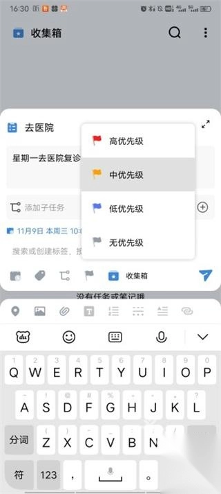 4、要是任务比较重要,用户还能点击小旗帜图标来设置优先级,点击确定就能生成任务了。