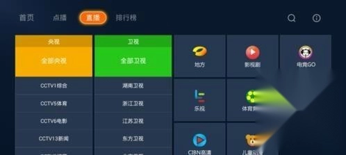 打开后,进入影音版块的电视直播页面,这里汇集了TV端的所有直播类应用。