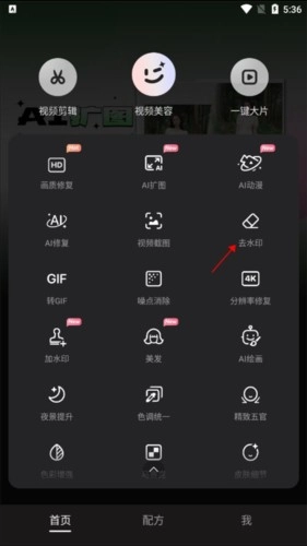 1、在首页功能中找到去水印点击。