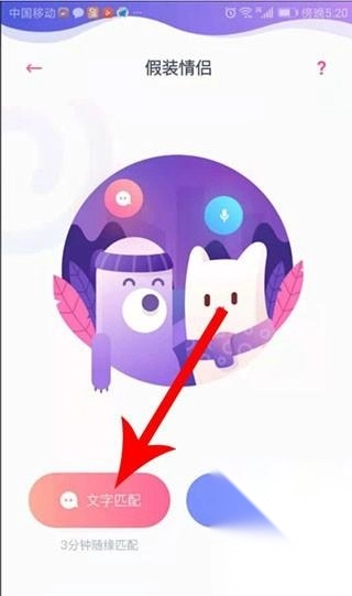 2、进入“假装情侣”界面后,点击“文字匹配”按钮;