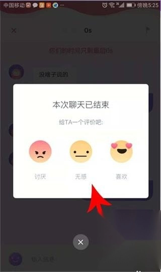 5、倒计时结束后,你和对方的对话窗口就会关闭,同时弹出评价窗口,点击上面列出的选项操作即可。