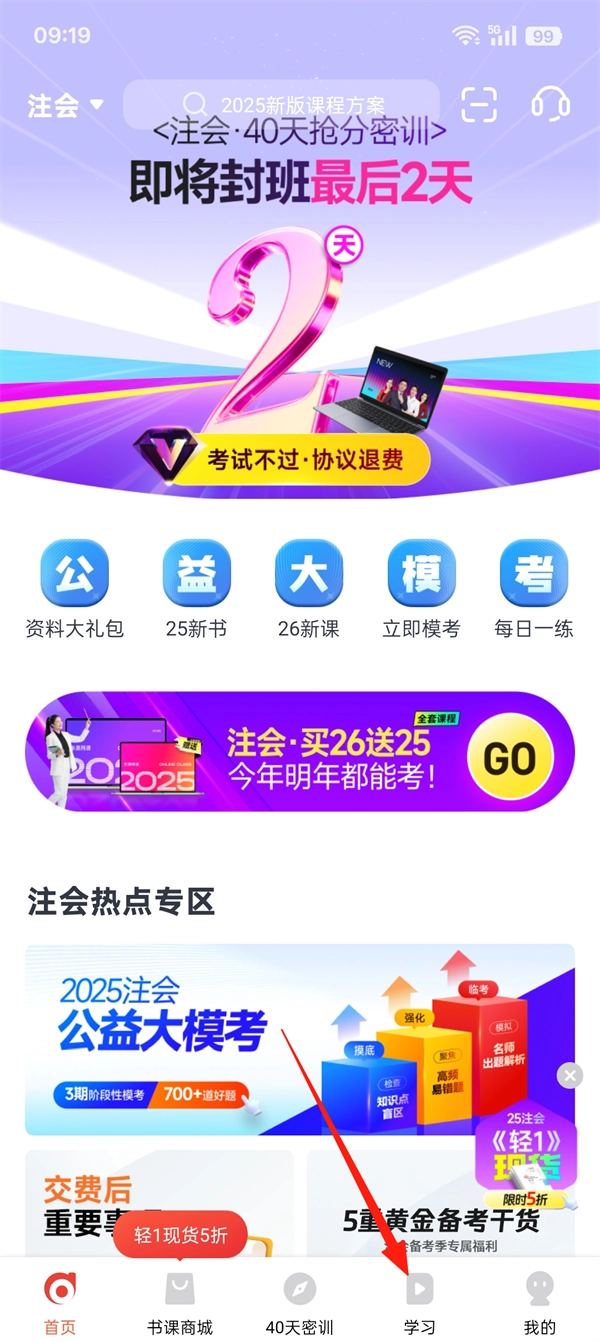 打开软件,点击【学习】