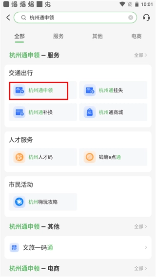 选择“杭州通申领”