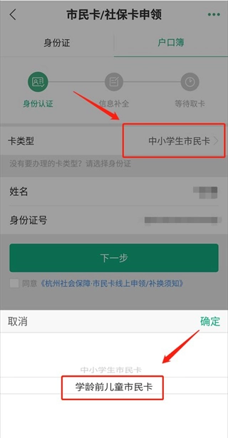 选择卡类型为“学龄前儿童市民卡”