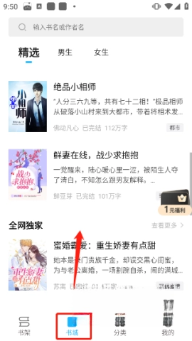 首先点击下图中的“书城”入口,这里汇聚了海量优质小说,等待你前来探索。