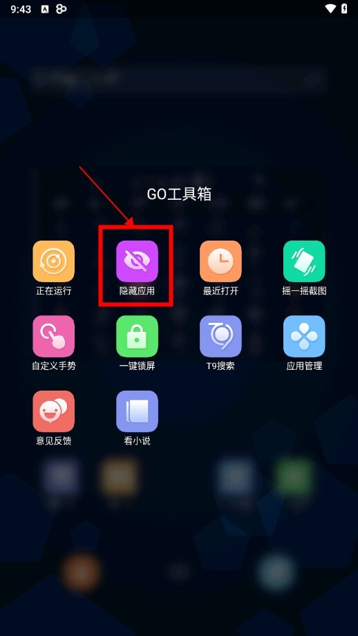 2. 当进入工具箱之后,挑选“隐藏应用”这一功能。