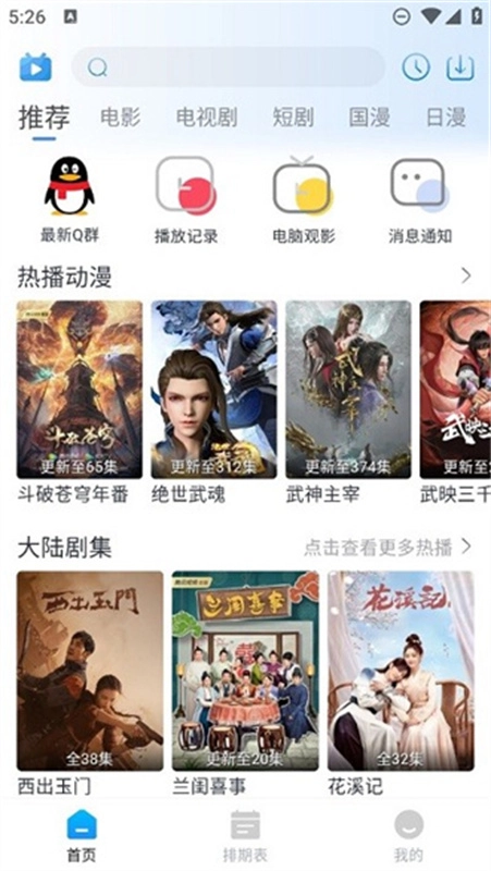 进入首页后,顶部导航栏整合了丰富多样的影视类别,涵盖电影、电视剧和动漫等内容。