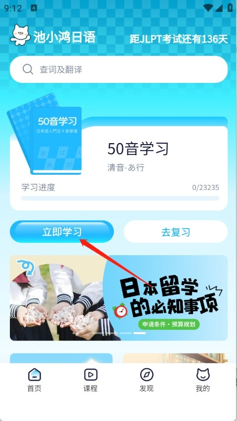 2、进入到首页,点击“立即学习”。