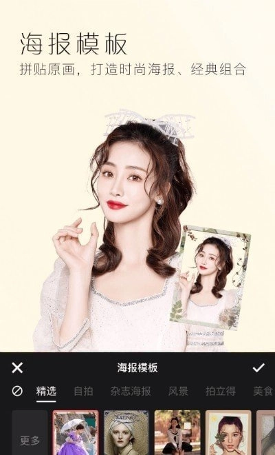 模板拼图、风格滤镜、自然照片效果,还有脸部的平滑与美白处理