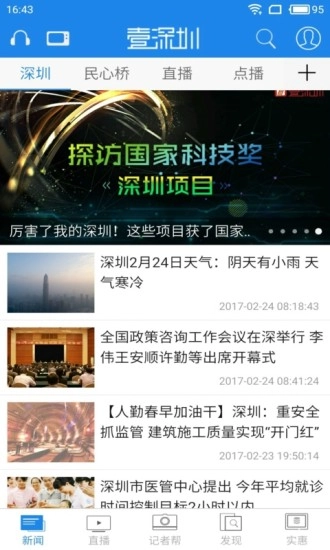 4、新闻板块:汇聚最新鲜的深圳本地资讯,作为深广电记者的新闻首发阵地,同时提供丰富多元的本地娱乐及生活服务信息。