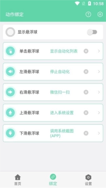 ・【绑定】页面,自由绑定常用的动作;
