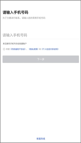 1、在本站安装并打开呼我司机软件,进行注册登陆。