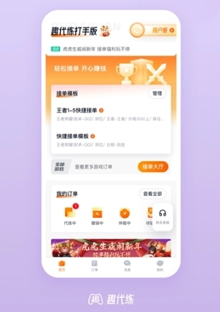 支持用户通过在线方式快速接单,以便实时获取更多代练订单。