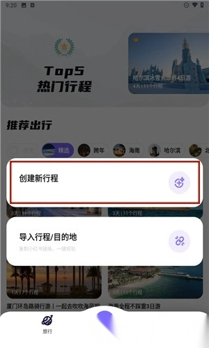 用户既能直接挑选心仪的旅程启动查询,也能点击页面下方紫色的“+”添加按钮来制定新的行程安排。