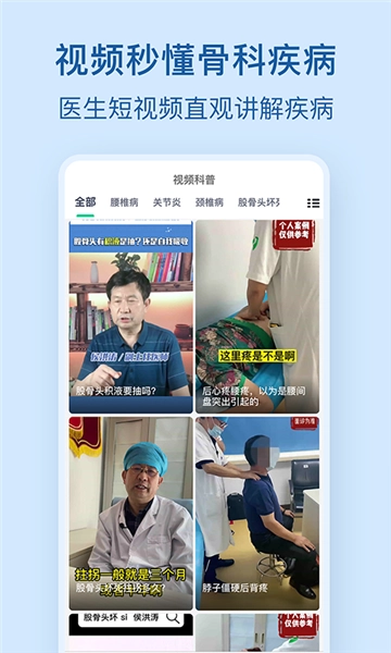 骨科挂号是一款由北京首大医院管理有限公司所研发的骨科挂号软件,这款软件将为用户带来方便的骨科预约功能,让你可以更加的方便的找到医生并尽快的进行医疗,为老百姓造福。汇聚众多三甲医院的着名骨科专家号源,所有专家信息都可以在线查看,手机挂号超轻松,操作流程直观,线上预约不用排队,看病更便捷。用户可以在这款软件上面进行线上预约挂号,软件还有疾病预防和康复知识,让用户可以更好的避免不正确的生活习惯引起的骨头疾病,如果你有骨科医疗需求的话,那么这款软件一定不要错过哦。