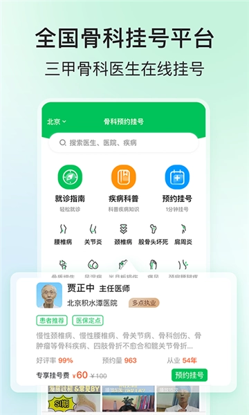 1.覆盖北京骨科知名专家号源;