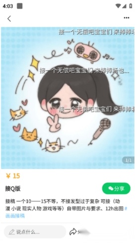 3.开启约稿流程,支持你自主摆摊接单,在此过程中还能和同好们相互交流。
