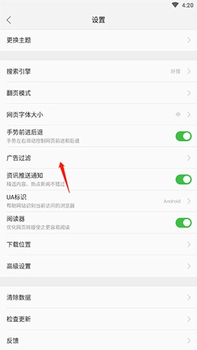 3、点击“广告过滤”选项。