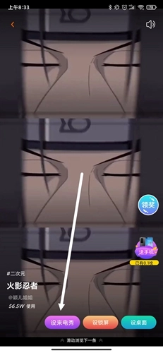 然后我们可以看到壁纸下方有三个设置类型选项,点击设置壁纸,然后看一段广告,即可完成壁纸的设置。