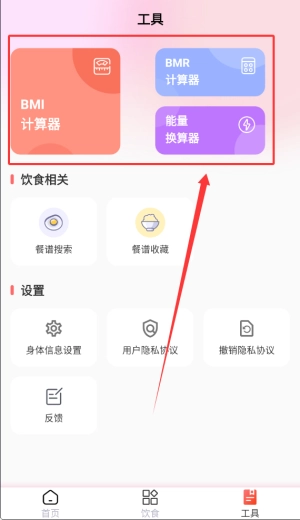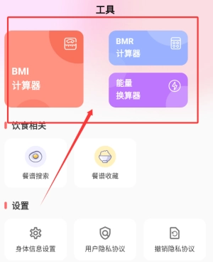 3、工具区配备了多种实用计算功能,涵盖身体质量指数、基础代谢率等专业测算项目。