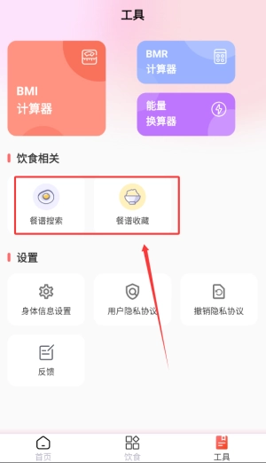 4、工具区兼具菜谱检索与个人收藏管理功能,方便用户随时查看健康饮食方案。