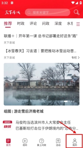 首先,用户可以选择使用本站最新版本的“天下泉城”应用,打开该应用后,点击首页右下角的“我的”入口。