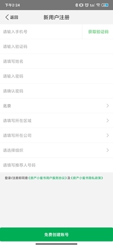 接着我们进入了注册页面,不少独立从事房产相关工作的人一看到“公司”这一栏,就误以为必须填写公司信息才能注册,实际上并非如此——在公司填写处,是可以选择将自己归为自由经纪人的,之后只需输入相关信息就能完成注册流程。