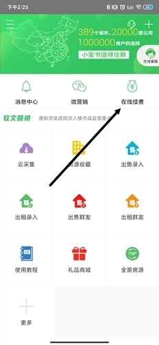 房产小蜜书具备拓展功能,能让售房过程更轻松,不少用户想了解它的月费情况。实际上该软件最低是以季度为单位收费的,我们可以打开软件,点击里面的【在线续费】选项。