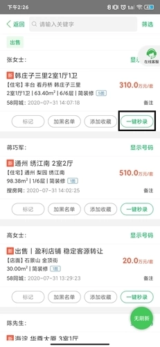 我们可以先通过电话联系这些业主,凭借出色的沟通能力说服他们,之后就能利用一键秒录功能把房源信息录入系统了。