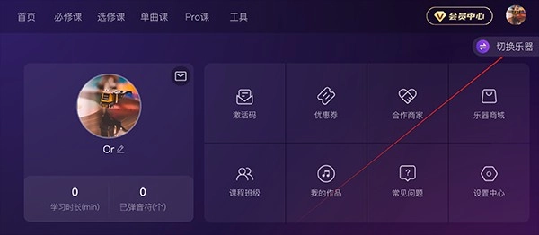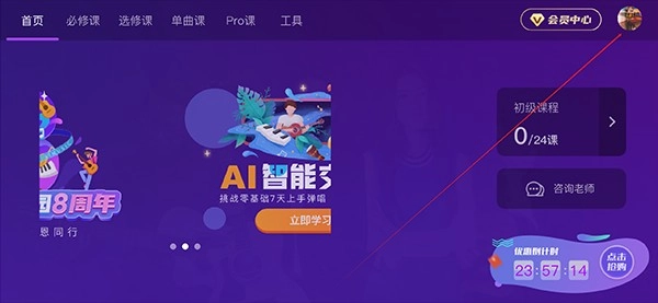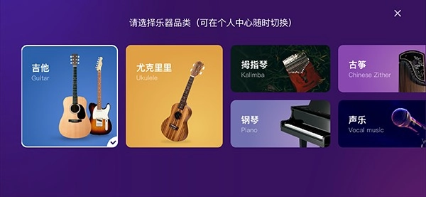 进入后,页面上展示的都是吉他相关的教学内容。要是你觉得这种乐器并不适合自己,那就点击头像进行操作吧。