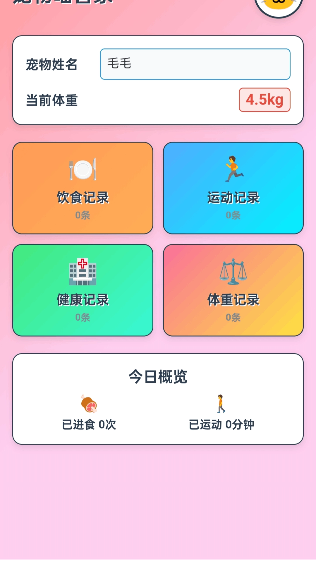 记录宠物的饮食、运动等健康相关数据,帮助宠物维持健康的身体状态。