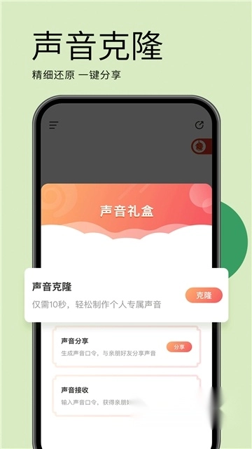 ● 声音克隆:仅需10秒,就能克隆你的声音,还可以分享给亲友,让你的声音常伴他们左右。
