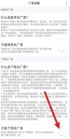 你可以这样操作:先进入广告设置页面,然后在该页面的底部找到并关闭个性化广告推荐功能就可以了。