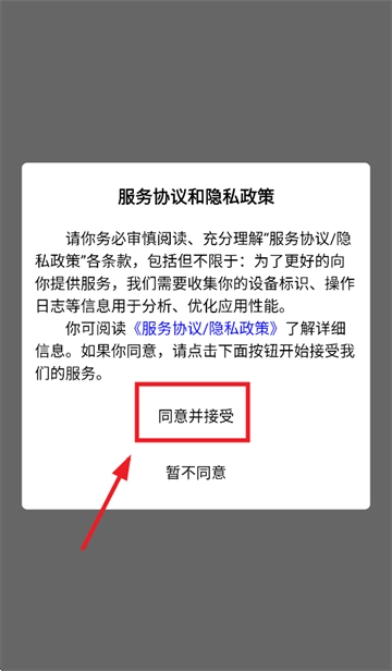 安装并打开梯修宝,先同意服务协议和隐私政策
