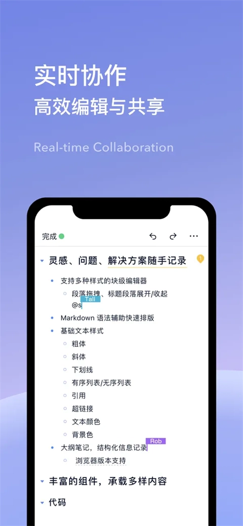 和团队成员一起配合完成工作,把内容妥善留存下来,方便大家互相分享,共同参与到任务的推进中;采用了全新的设计风格,视觉上更具吸引力,使用起来也更加流畅自然。