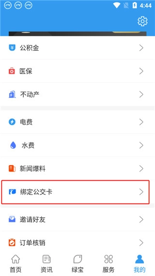 在【我的】功能中找到绑定公交卡设置。