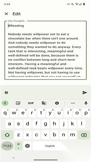 用户的数据完全由自己管理,不会被外部服务限制。采用Material You设计理念,界面能适配系统主题变化,带来舒适的视觉体验。除了文字创作,还支持插入图片和添加待办任务,让内容呈现更丰富多元。平台严格保障个人信息安全,不收集任何相关数据,让用户使用时更放心。